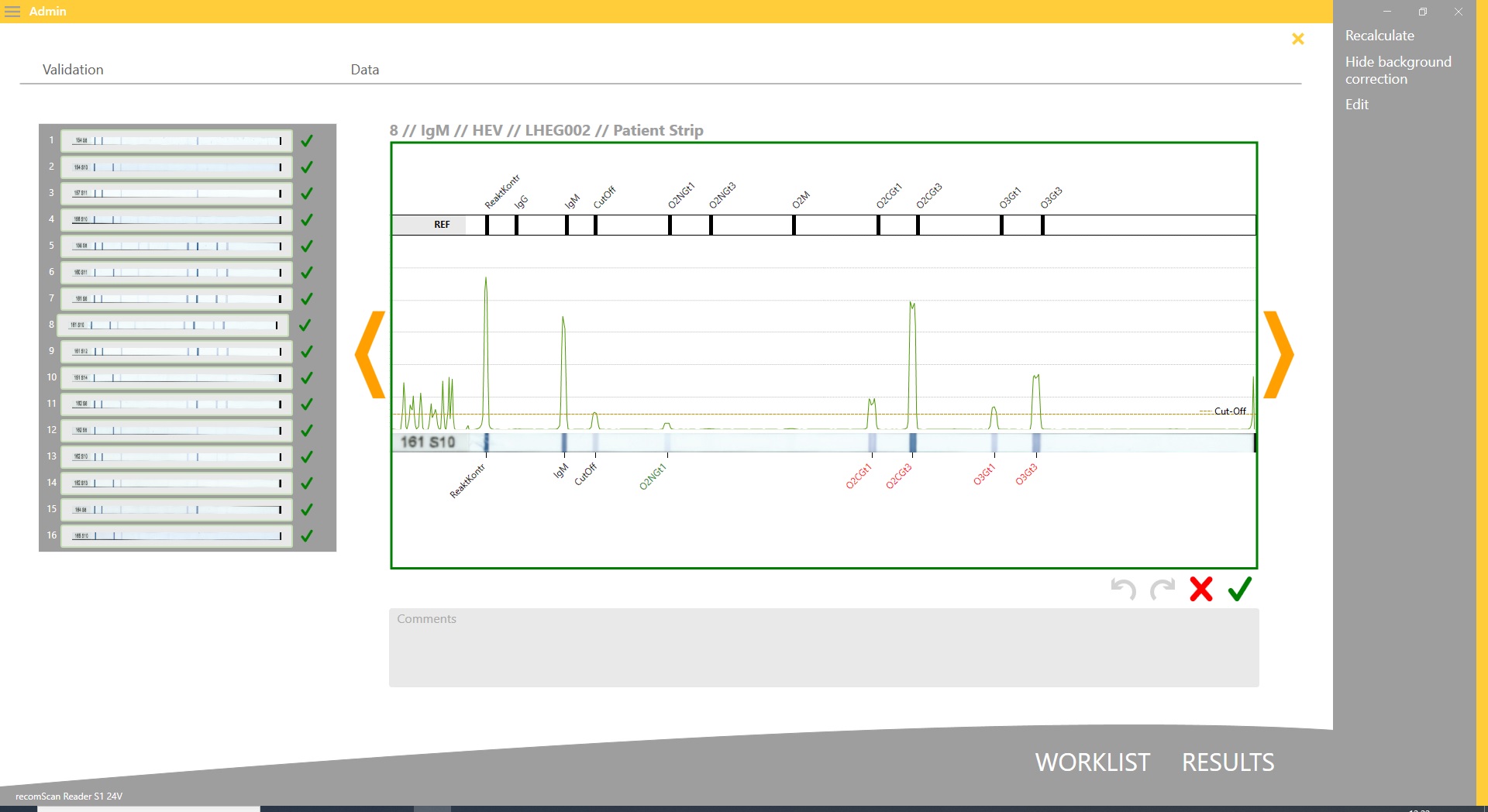 Fig.: Screenshot of the new validation step using the example of a recomLine HEV IgM strip