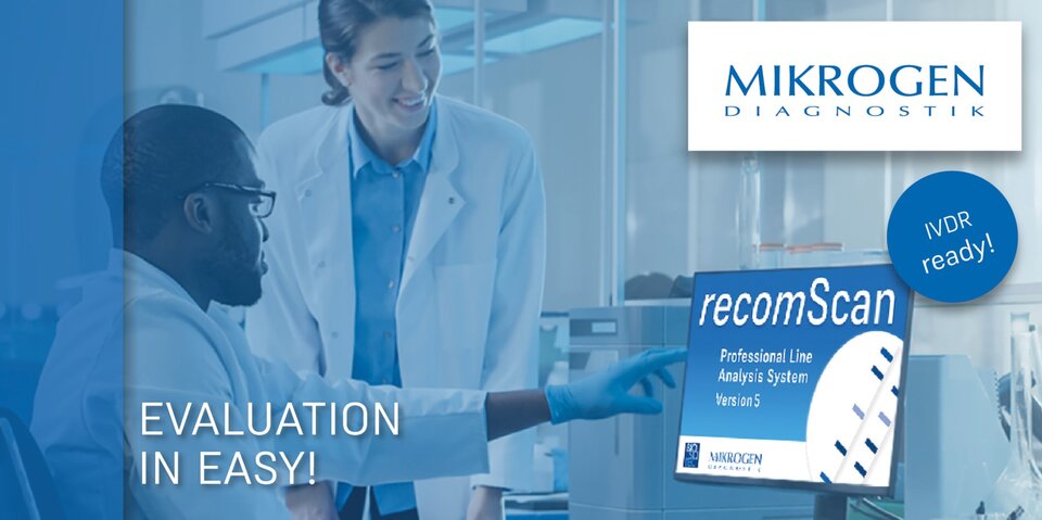 - The evaluation of MIKROGEN Line immunoassays with recomScan System 5 is validated and part of an IVDR-compliant workflow*