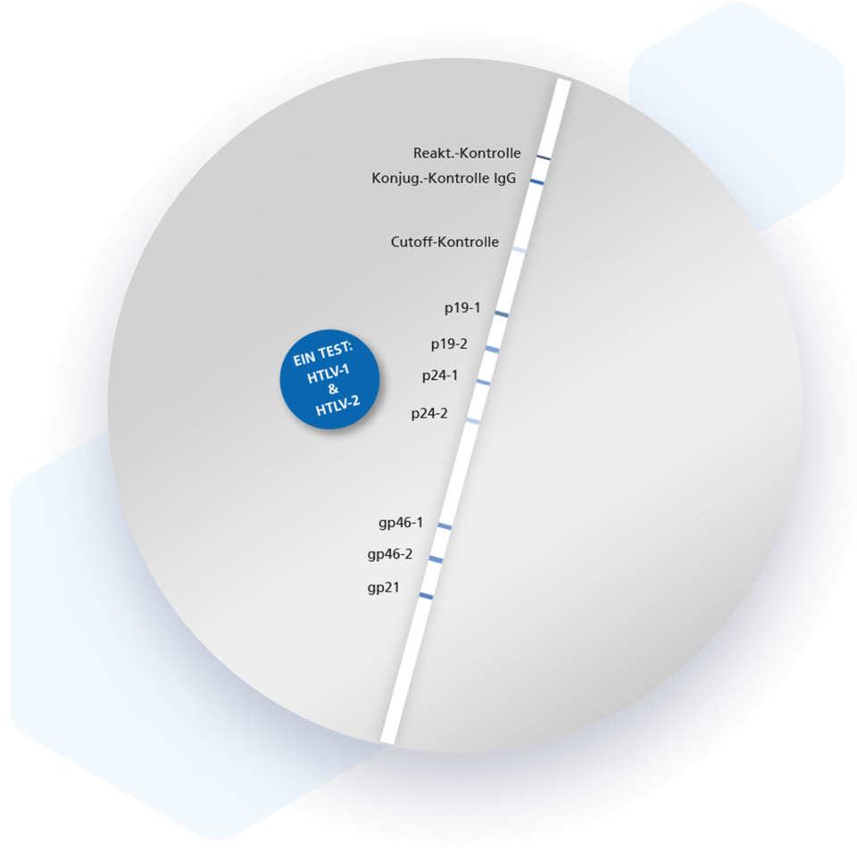 - Sehr gute Typisierung von HTLV-1 und HTLV-2 auf einem Teststreifen